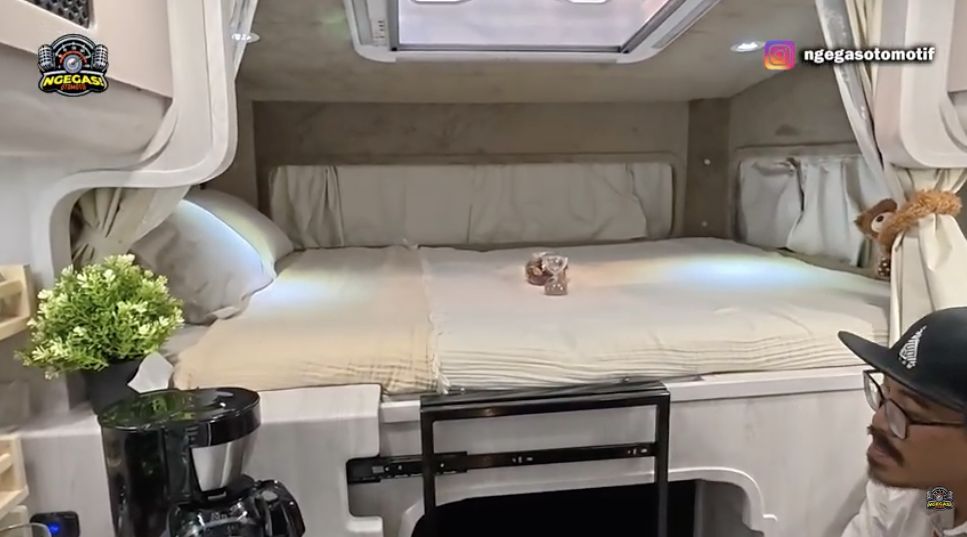 “Sebetulnya bisa dicopot. Makanya kita nggak tutup permanen. Ketika tidak perlu lagi jadi motorhome, tinggal dilepas,” ujar Iksan dari Baze Luxury Bus.